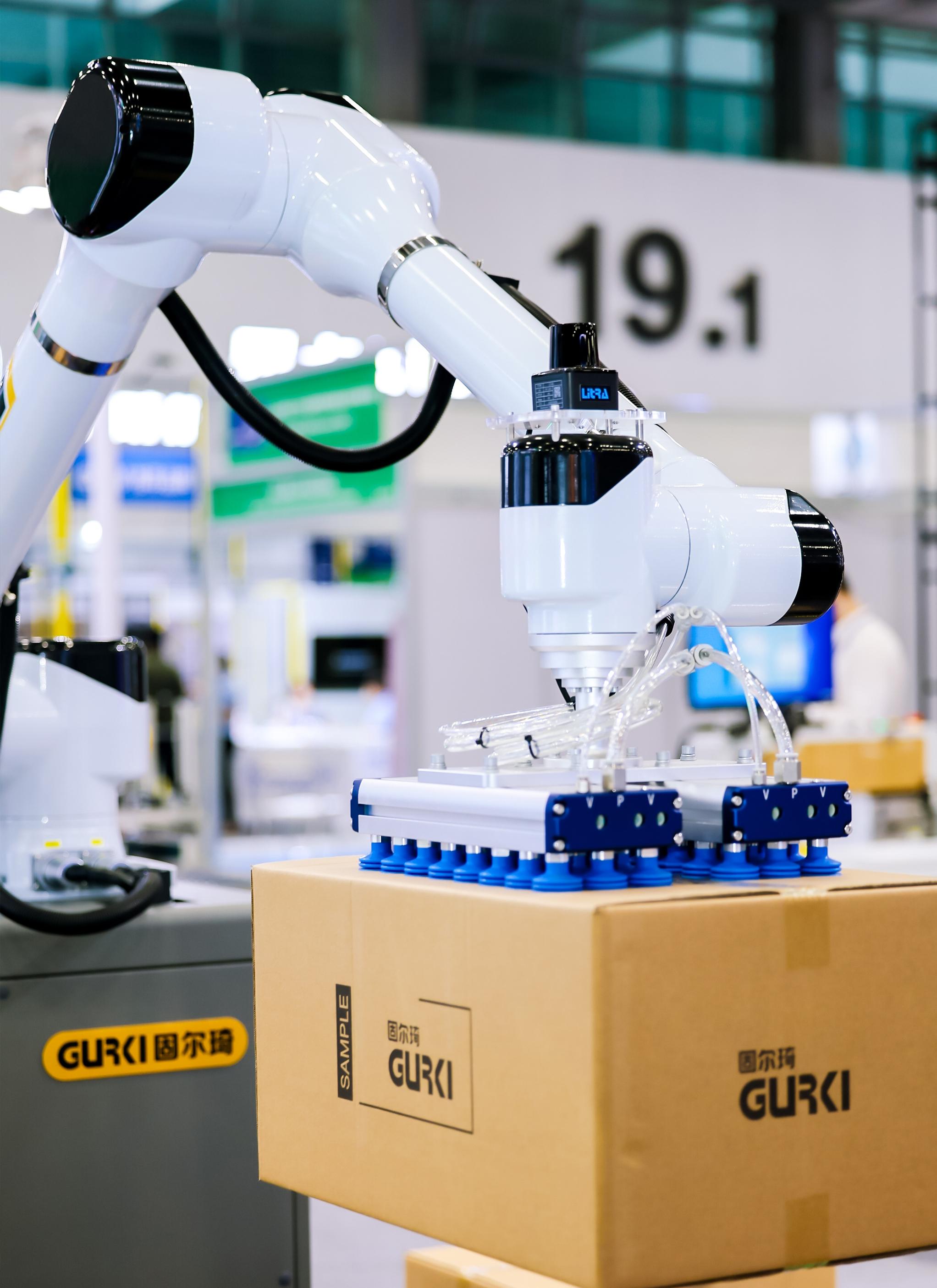 本次展會,固爾琦聚焦“高效、柔性、智能”三大關鍵詞,展示了覆蓋倉儲分揀、智能打包、協作機器人碼垛等環節的標桿性設備,打造從商品入庫到出庫的全鏈路智能化作業流程。
