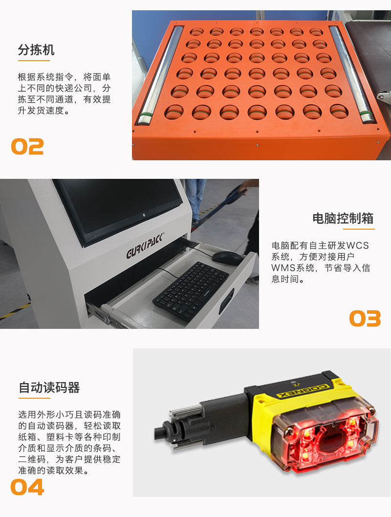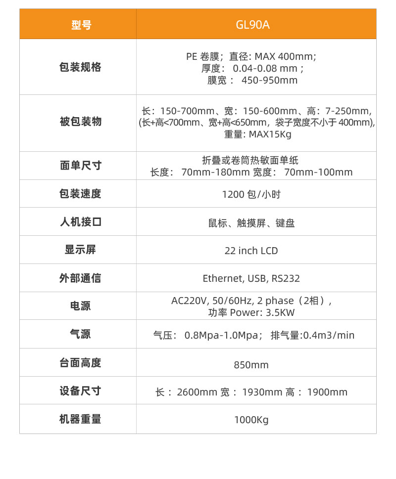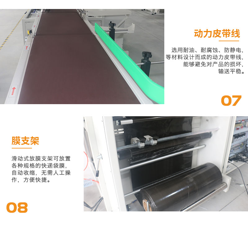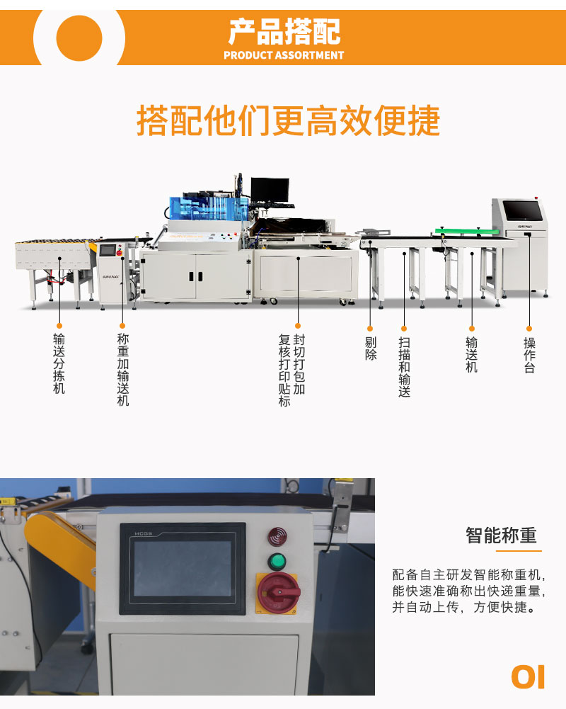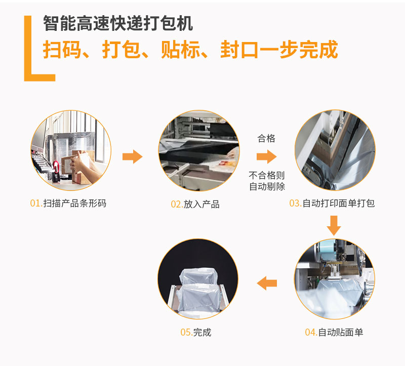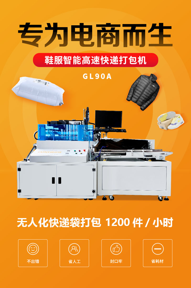 本產(chǎn)品是我司研發(fā)出的智能高速快遞打包機,專為電商物流用戶所打造。全機以高性能工業(yè)控制電腦為核心,集掃碼、錯件自動剔除、打包、貼標于一身,速度可達1200包/小時,是電商物流行業(yè)一體化包裝解決方案的理想選擇。同時,能根據(jù)客戶需求對接主流ERP系統(tǒng)和WMS系統(tǒng)、選配稱重機、分揀機、前后輸送工作臺等,為客戶提供貨品的塑料膜包裝發(fā)貨整體解決方案。