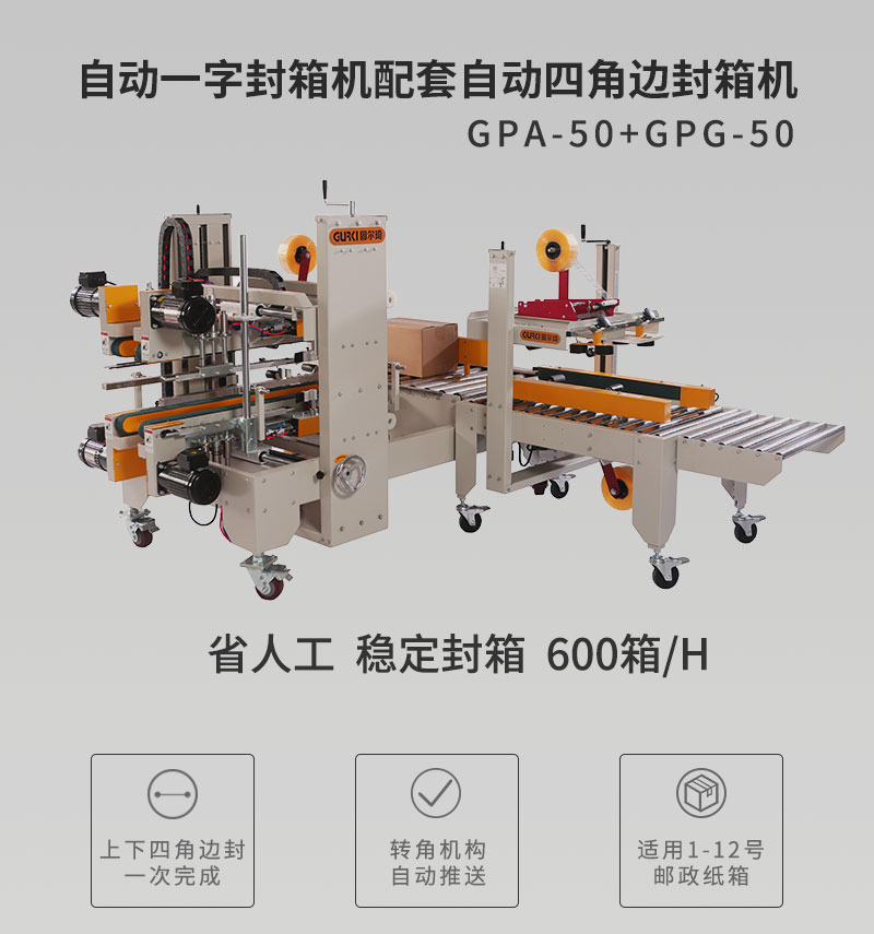 電商封箱機配套快遞貼面單機,封箱貼面單效率日發8000+。具備一鍵式傻瓜操作,自動化封箱貼面單一步完成,保養簡單,穩定性強的特點