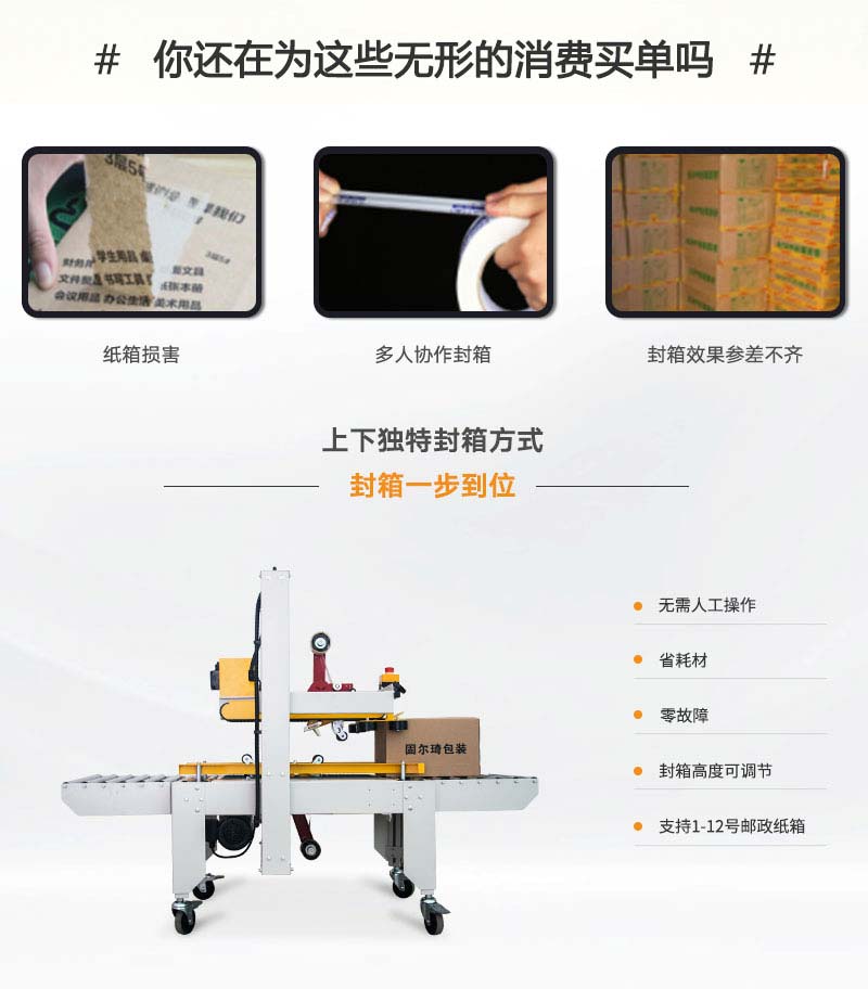 [化妝品行業(yè)] 電商封箱機,自動快遞貼面單機,這個兩用型的打包機,效率高!