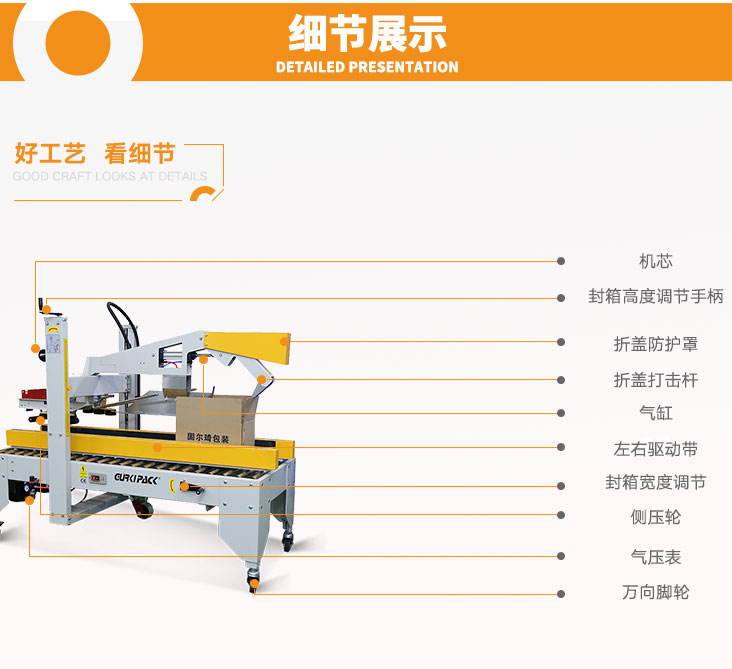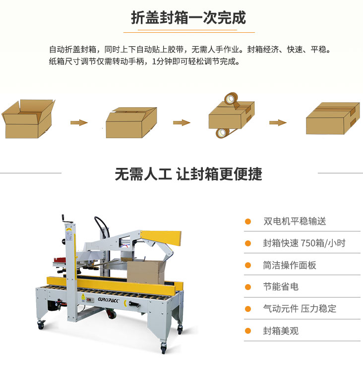 電商封箱機配套快遞貼面單機,封箱貼面單效率日發8000+。具備一鍵式傻瓜操作,自動化封箱貼面單一步完成,保養簡單,穩定性強的特點