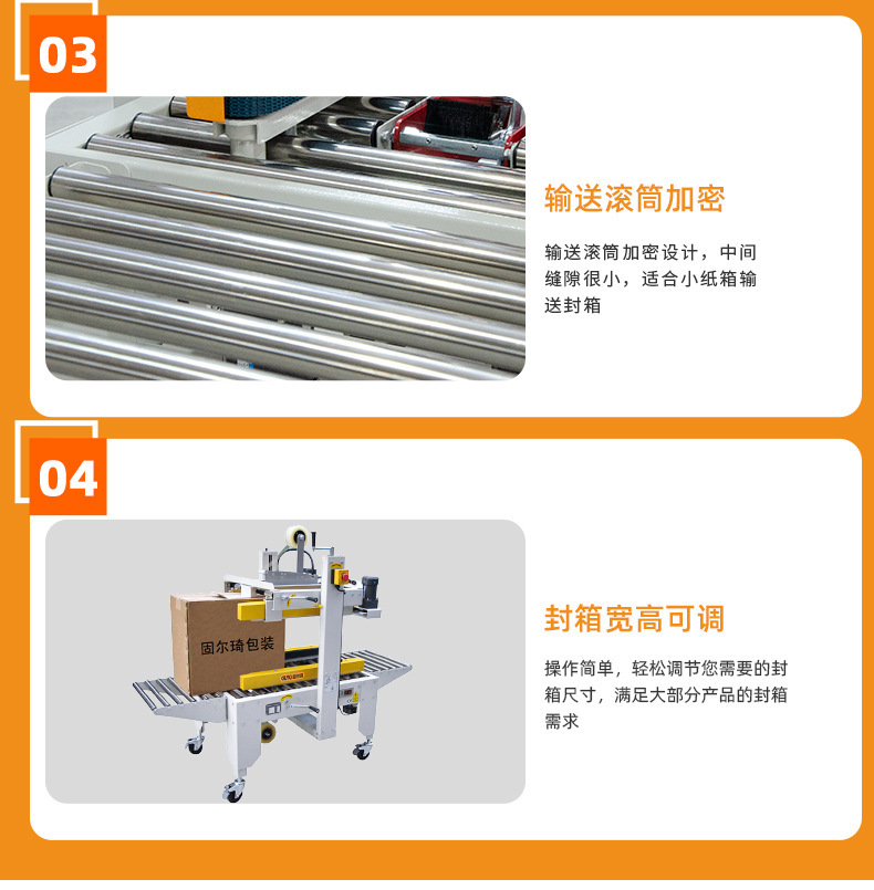 電商封箱機配套快遞貼面單機,封箱貼面單效率日發8000+。具備一鍵式傻瓜操作,自動化封箱貼面單一步完成,保養簡單,穩定性強的特點
