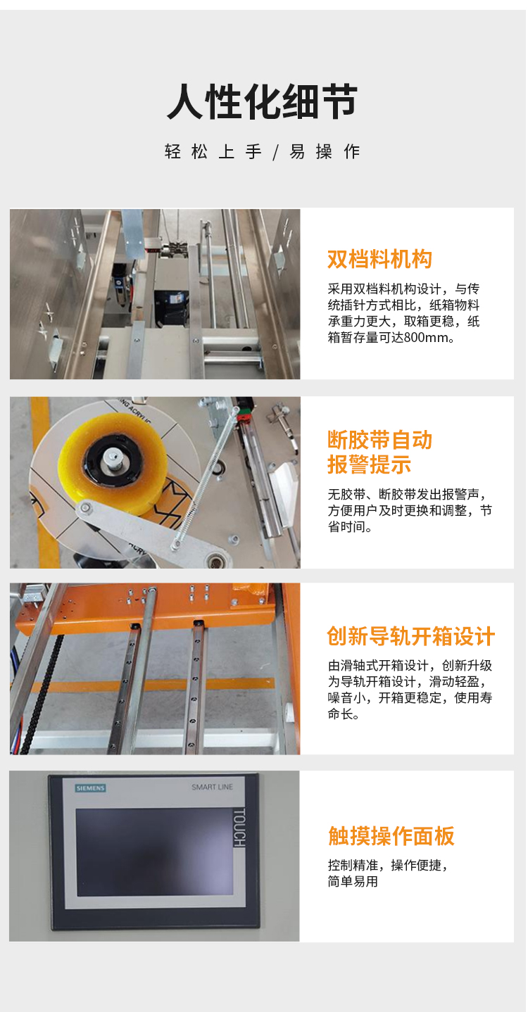 電商封箱機(jī)配套快遞貼面單機(jī),封箱貼面單效率日發(fā)8000+。具備一鍵式傻瓜操作,自動(dòng)化封箱貼面單一步完成,保養(yǎng)簡單,穩(wěn)定性強(qiáng)的特點(diǎn)