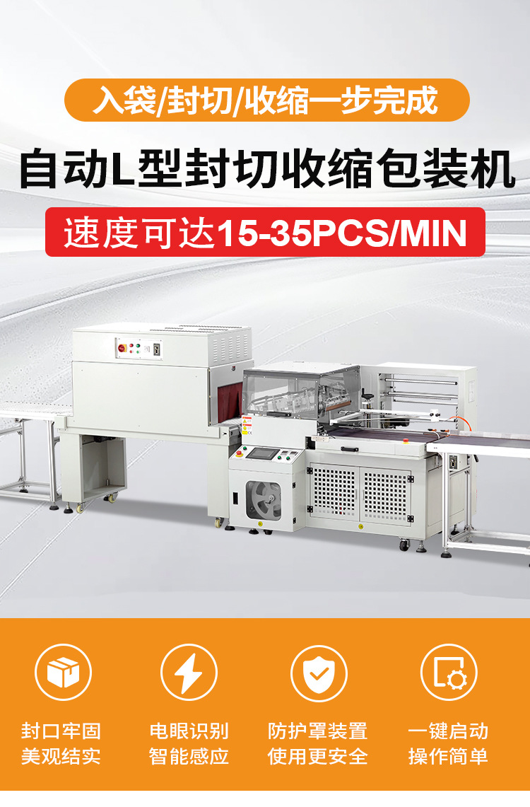 自動L型封切收縮包裝機是一款針對薄小產品專門研發生產設計的經濟型封切機,具有自動送膜打孔,套膜封切的工作特點。同時,只需手動調節導膜系統以及手動調節進料輸送平臺,速度可達15-35件每分鐘,封切線細、居中,包裝效果平整美觀,適用不同寬度及高度的產品,廣泛用于化妝品、醫藥、食品、軟件、飲料、煙草、日化、汽車、線纜、電子等大批量產品收縮包裝。