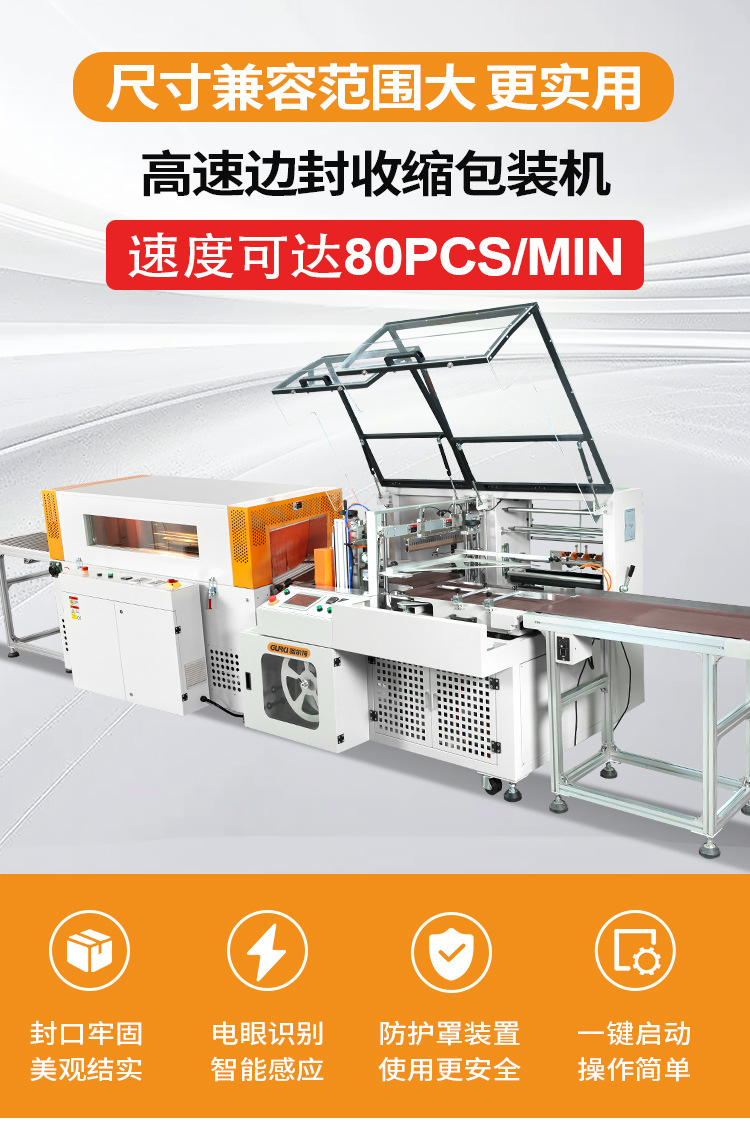 全自動(dòng)高速邊封收縮包裝機(jī)是用于對(duì)產(chǎn)品進(jìn)行全自動(dòng)在線高速收縮包裝,采用光電對(duì)產(chǎn)品進(jìn)行自動(dòng)偵測(cè),包裝能力為每分鐘85包,適合包裝 各類型不同大小及形狀的產(chǎn)品。觸屏控制機(jī)器,調(diào)節(jié)方便簡(jiǎn)單,同時(shí)可儲(chǔ)存多種產(chǎn)品包裝數(shù)據(jù),使用時(shí)可直接從系統(tǒng)中調(diào)出,方便快捷,大大縮短更換包裝產(chǎn)品時(shí)所需的時(shí)間。該款收縮包裝機(jī)廣泛用于批量生產(chǎn)包裝的流水作業(yè),印刷、彩盒、賀卡、相冊(cè)、相框、醫(yī)藥、電子、日 化、化妝品、汽配、五金、食品等大批量生產(chǎn)的行業(yè)。