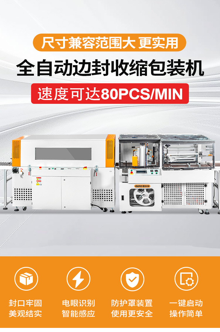 全自動邊封收縮包裝機是一款針對多種規格產品包裝研發生產的一款自動對膜進行封切收縮的封切包裝機,整機配有PLC程序系統,采用光電對產品進行自動偵測,根據產品自動調節送料長度,自動對產品進行封切收縮,檢測開關控制電機自動卷收廢膜。從而實現無人化自動包膜的特點,該機工作效率高,針對不同產品尺寸,可達每分鐘3-35件,該款封切收縮包裝機適用于化妝品、印刷、彩盒、醫藥、日化、汽配、食品等行業。