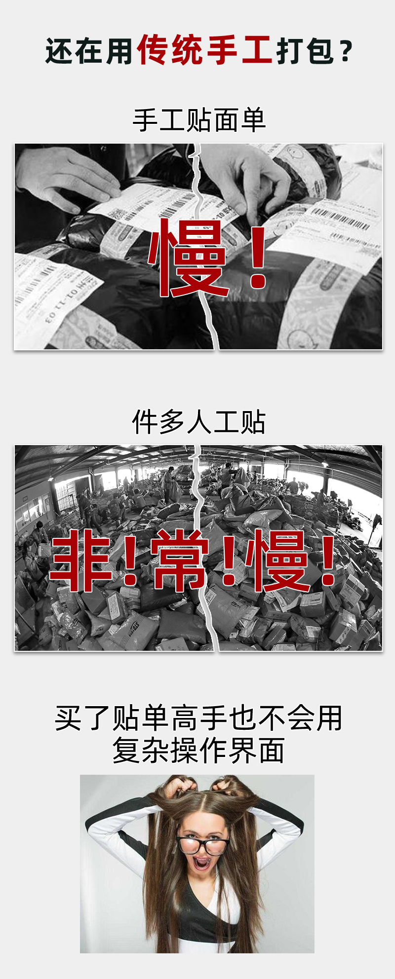 電商封箱機配套快遞貼面單機,封箱貼面單效率日發(fā)8000+。具備一鍵式傻瓜操作,自動化封箱貼面單一步完成,保養(yǎng)簡單,穩(wěn)定性強的特點