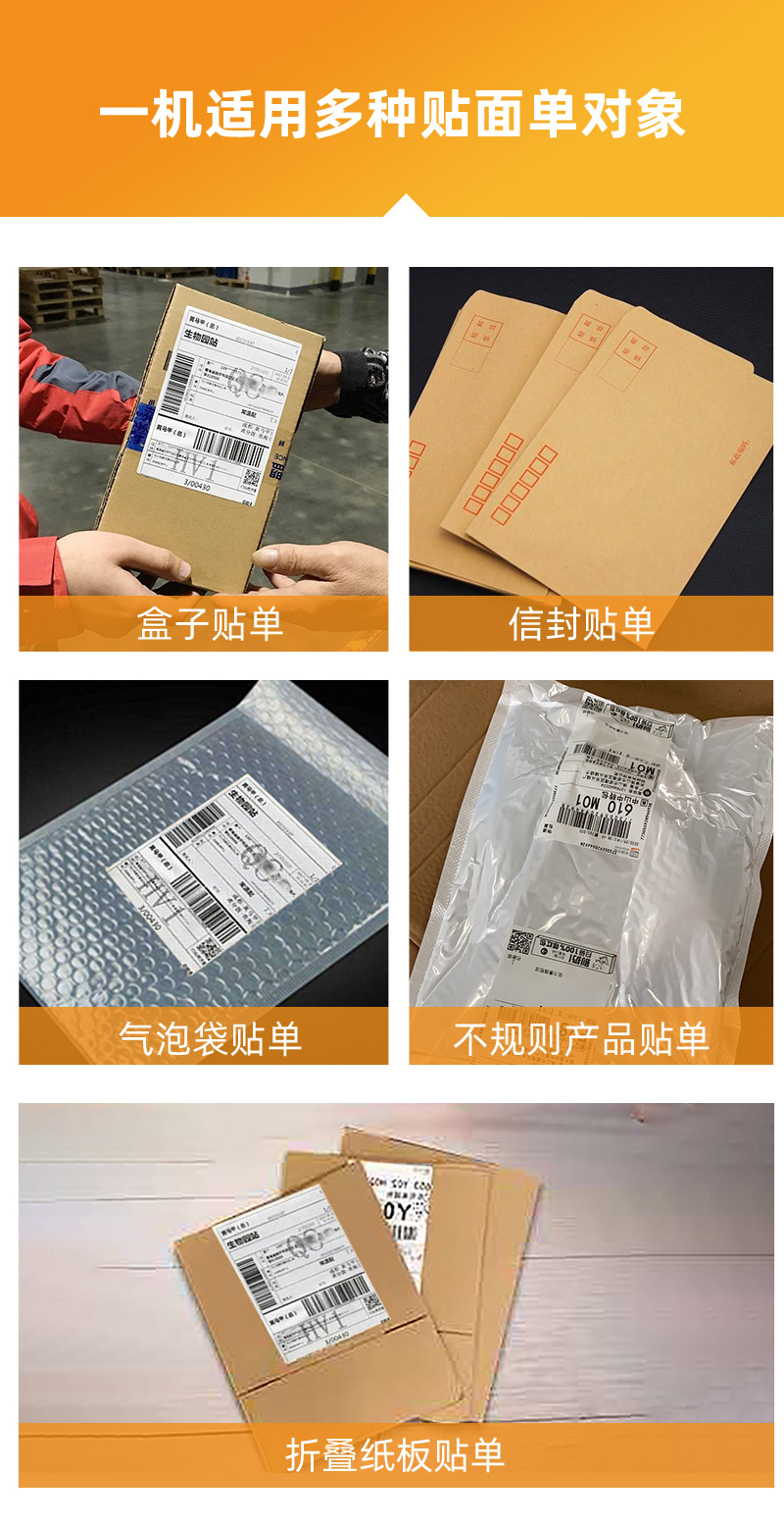 電商封箱機配套快遞貼面單機,封箱貼面單效率日發8000+。具備一鍵式傻瓜操作,自動化封箱貼面單一步完成,保養簡單,穩定性強的特點