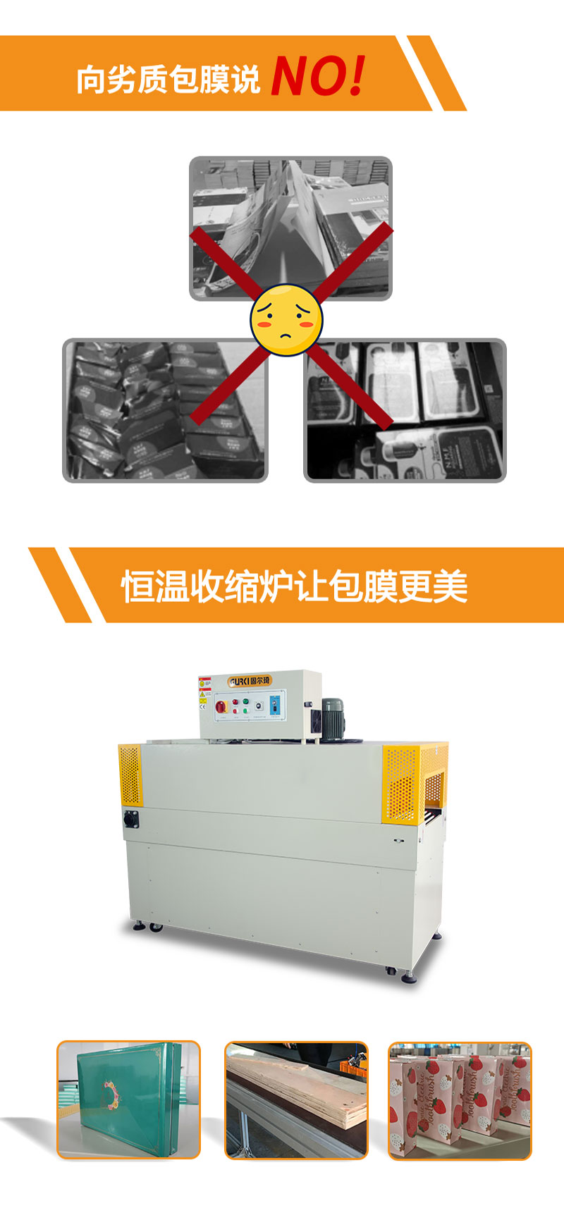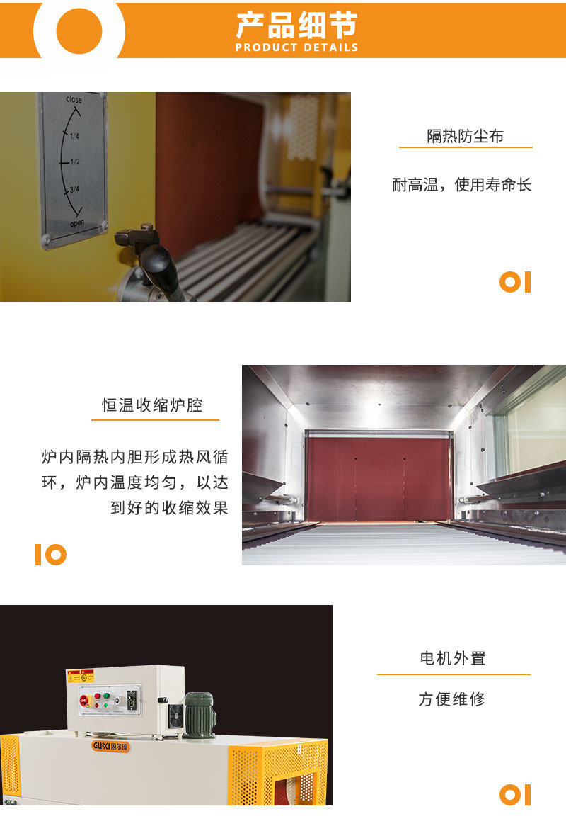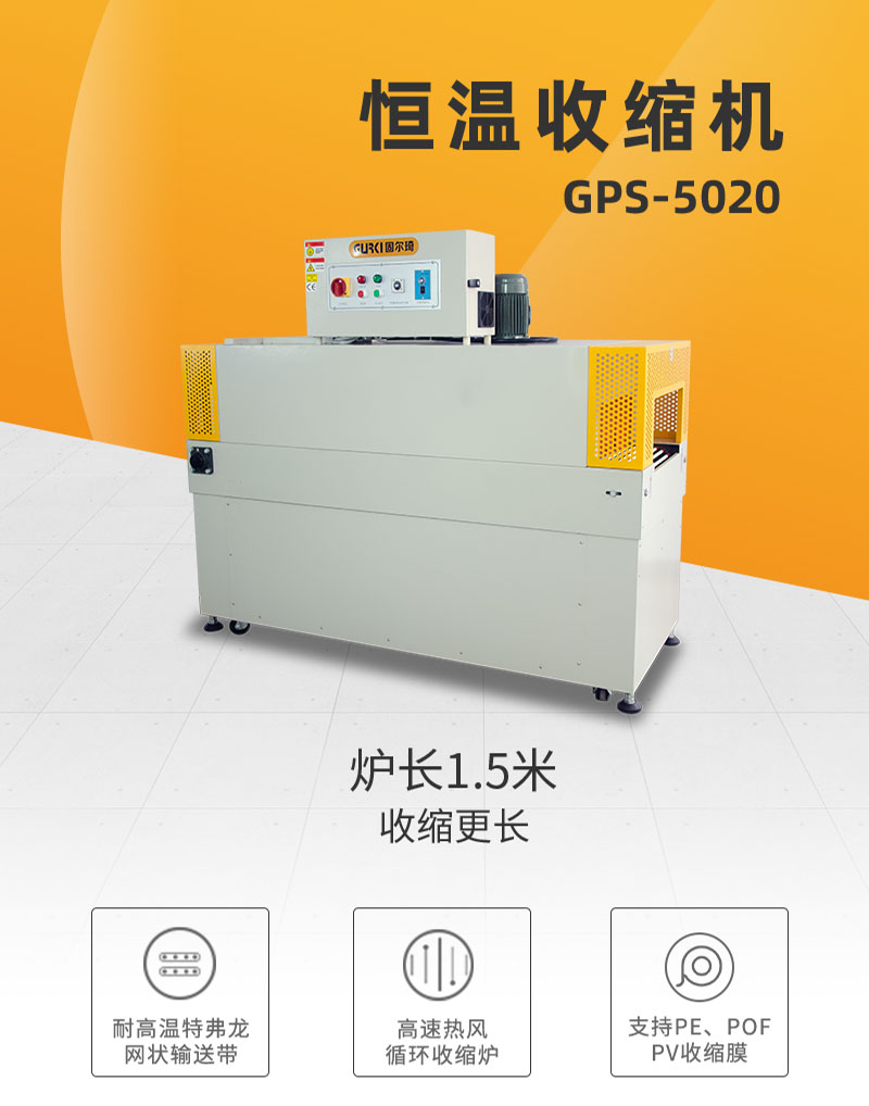 恒溫收縮機(jī)GPS-5020X是我司根據(jù)市場(chǎng)設(shè)計(jì)出的一款升級(jí)版恒溫收縮包裝機(jī),由高性能跟精密組件設(shè)計(jì)而成,運(yùn)轉(zhuǎn)過(guò)程無(wú)振動(dòng),經(jīng)久耐用,操作面板設(shè)計(jì)簡(jiǎn)潔,該機(jī)采用電機(jī)外置,方便維護(hù)設(shè)計(jì),爐長(zhǎng)1.5米,適用更長(zhǎng)物品收縮,可單機(jī)作業(yè),也可與自動(dòng)化包裝流水線配套使用。應(yīng)用行業(yè):該款收縮機(jī)適用于餐飲、日化、醫(yī)藥、禮品、工藝品、玩具、五金、機(jī)械等包裝。